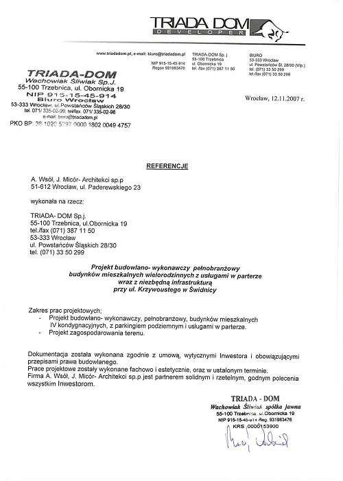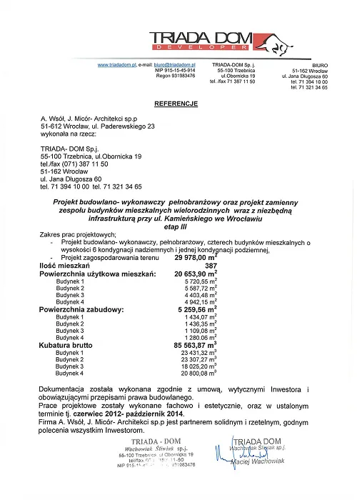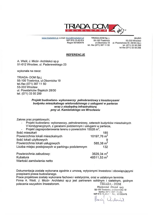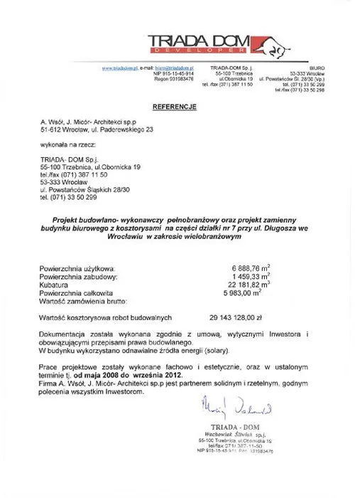 Zrównoważone projektowanie to jeden z filarów naszej pracy. Nasi architekci stosują materiały o niskim śladzie węglowym i projektują budynki z myślą o efektywności energetycznej. Badania pokazują, że takie podejście może obniżyć koszty eksploatacji nawet o 25% ([źródło: Wikipedia – Architektura zrównoważona](https://pl.wikipedia.org/wiki/Architektura_zrównoważona)).