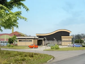 Hala basenowa wymaga stabilnej temperatury i wilgotności, dlatego zaprojektowano układ nawiewno–wywiewny z osuszaniem, aby wyeliminować zaparowania i przeciągi. Materiały w strefach mokrych dobrano pod odporność chemiczną i łatwe czyszczenie (detale cokołowe, dylatacje, spadki do odwodnień). Akustykę poprawiono panelami pochłaniającymi w strategicznych miejscach, co redukuje pogłos i ułatwia prowadzenie zajęć. To detale, na które