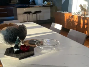 Wybrane materiały są odporne i proste w czyszczeniu: blaty z kamienia spiekanego, lakiery o podwyższonej odporności, panele z atestem do ogrzewania podłogowego. Dodatkowo przewidzieliśmy miejsce na jednostki systemu smart home, aby w przyszłości łatwo rozbudować sterowanie o rolety czy nawilżanie.