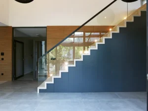 To wolnostojący dom dwukondygnacyjny, niepodpiwniczony, z wbudowanym garażem dwustanowiskowym. Całość zaprojektowano z myślą o codziennej wygodzie i prostym porządku funkcji, tak aby przestrzeń łatwo się czytała i nie wymagała „obsługi”. Jako architekci zaczęliśmy od układu komunikacji, a dopiero potem dobraliśmy materiały i detale. Dzięki temu każdy metr wspiera rytm dnia domowników, a rozwiązania są praktyczne w utrzymaniu.