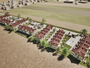 Status: projekt opracowano w 2025 (uzyskano pozwolenie na budowę), budynki w trakcie realizacji