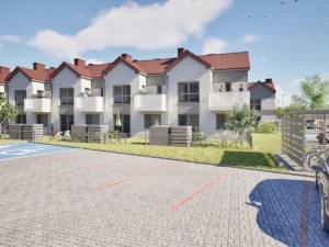 BUDOWA ZESPOŁU 33 BUDYNKÓW JEDNORODZINNYCH DWULOKALOWYCH W ZABUDOWIE SZEREGOWEJ – BRZEG DOLNY, UL. SZKOLNA