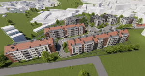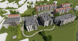 PROJEKT ZAGOSPODAROWANIA TERENU ORAZ PROJEKT ARCHITEKTONICZNO-BUDOWLANY 7 BUDYNKÓW MIESZKALNYCH WIELORODZINNYCH Z GARAŻAMI PODZIEMNYMI ORAZ PRZEBUDOWA ISTNIEJĄCEGO BUDYNKU NA LOKALE MIESZKALNE I USŁUGOWE – WOŁÓW, UL. INWALIDÓW WOJENNYCH
