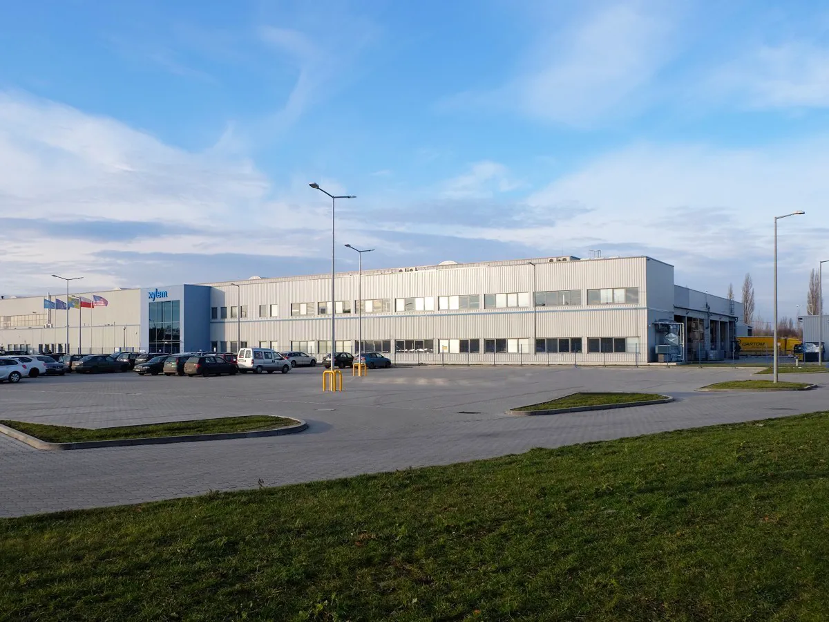 To zakład montażu pomp wody, w którym produkcja, magazyn i biura działają jak jeden organizm. Jako architekci od początku postawiliśmy na prosty układ, krótkie trasy logistyczne i czytelne rozdzielenie stref. Drugi etap (2013) dołożył metraż i funkcje, bez „przestawiania” fabryki – rozbudowa i nadbudowa biur zostały skoordynowane z rytmem pracy hali.
